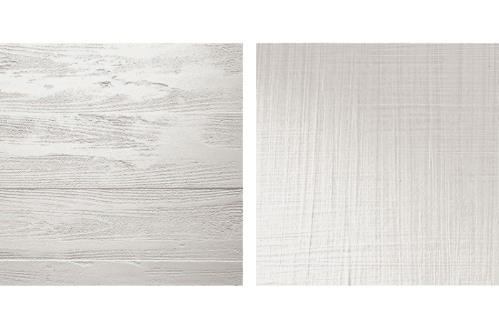 Další smyslové zážitky nám může bílá poskytnout díky texturám dekorativních úprav, které bílému odstínu dodají nový rozměr. Vybírat můžeme z neomezené nabídky materiálů a technik: od hlazených úprav s vizuální hloubkou, dekorů vrstvení materiálů, lineárních efektů, textilních struktur, organických motivů, materiálů s dokonale přírodním vzhledem, v dekorech hlubokého matu nebo metalických textur s decentním třpytem apod.